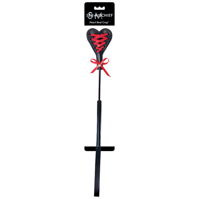 A corseted crop to make your heart stop! Nothing spikes the pulse like a quick swat on the hindquarters! This precious but powerful crop alludes to the loving feelings bound tightly within your laced-up heart, as well as the rough and rowdy enthusiasm required to set them free. One side is smooth for caressing, stroking, and spanking while the other side features bright red lacing and a beautiful bit of bling for a touch of extra sparkle.